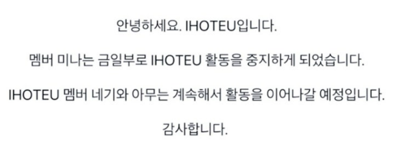 - 이호테우 전체 멤버(네기, 아무) 계약 해지