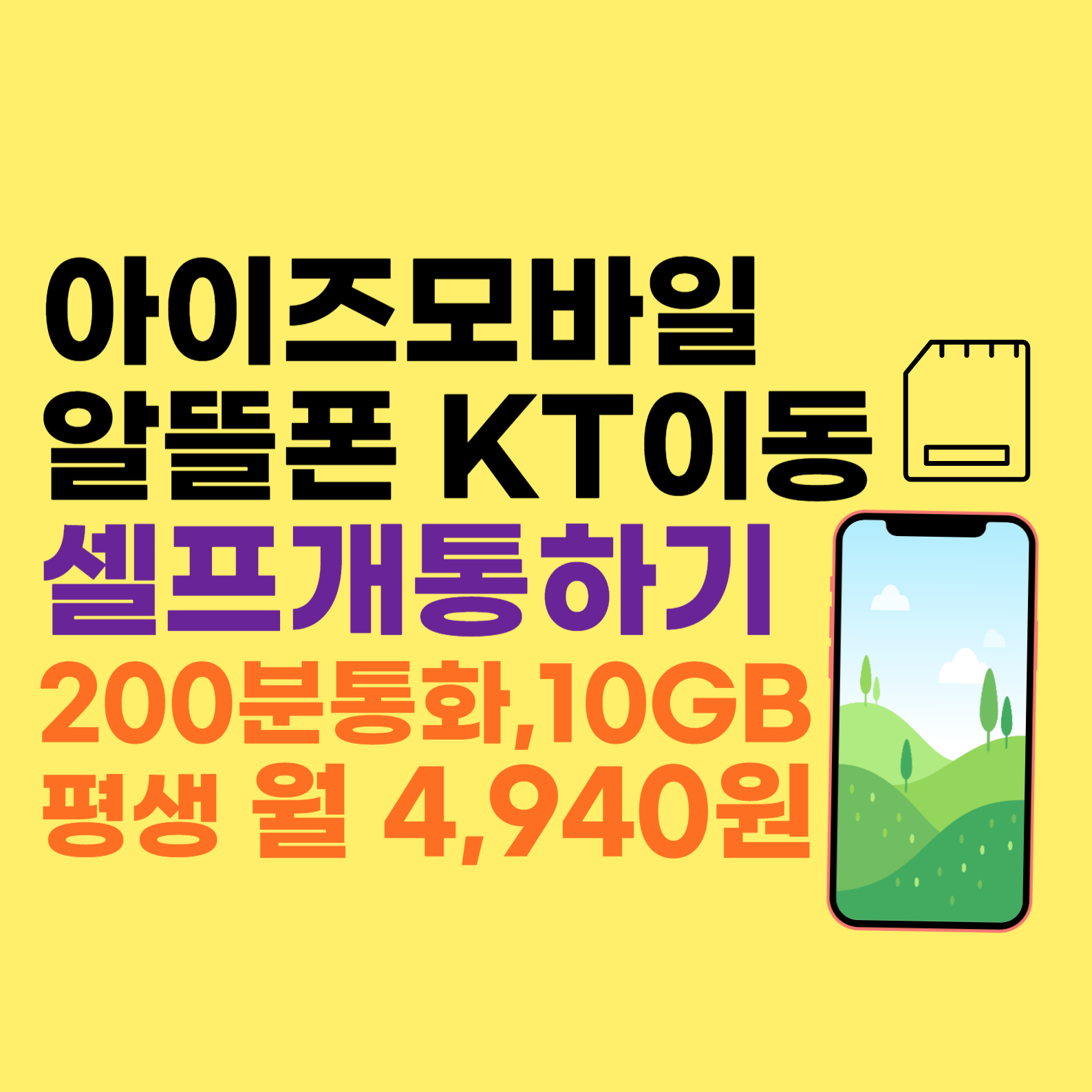 아이즈모바일 알뜰폰, 셀프개통 KT 200분통화 10GB 평생 월 4,940원 실화?