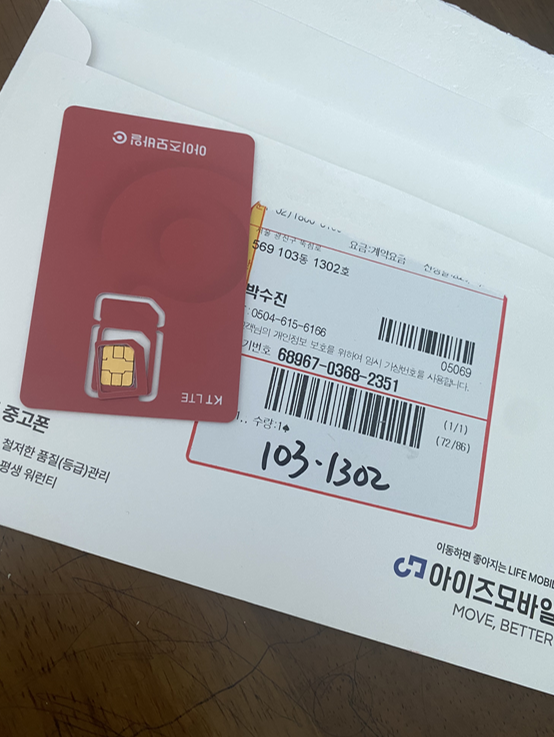 → 오전에 신청하니 바로 다음날 도착! (우체국 택배) - 유심 장착 & 문자 확인