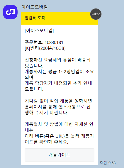 이번에 제가 직접 셀프개통을 해보았는데요,