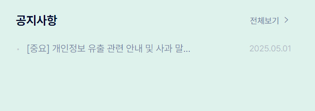 - ‘공지사항’ → ‘개인정보 유출 안내’ 게시글 클릭