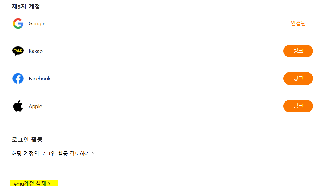 - 하단의 ‘Temu 계정 삭제’ 클릭