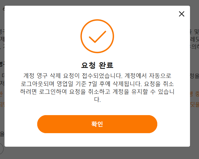 - 요청 완료 후 7일 대기 (로그인 시 취소됨)