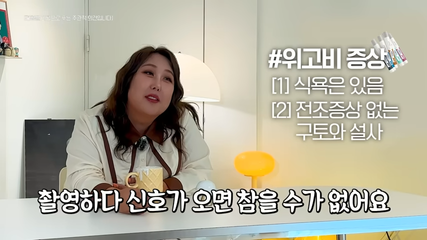 - “먹고 나면 토하고, 일주일 동안 아래로 쏟는 느낌. 촬영 중에도 조절이 힘들어 난감했다.”